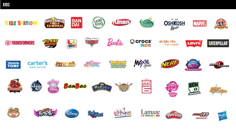 | KIDS | : | Kidz Station · OshKosh B'gosh · Barbie · Carter's · NERF · Bandai · Ben10 · and many more! |